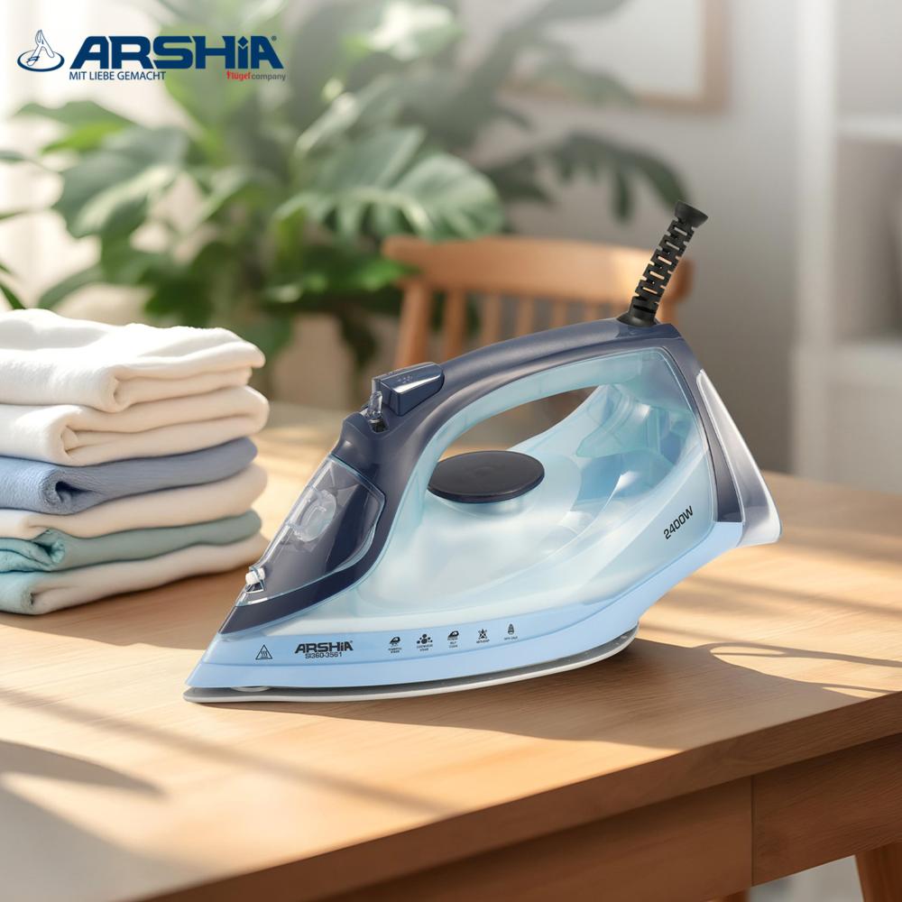 مكواة بخار – مكواة أرشيا – مكواة 2400 واط – مكواة كهربائية – مكواة بخار عمودي – Steam Iron – مكواة أزرق – مكواة ألمانية – ARSHIA – أجهزة كهربائية – أجهزة منزلية – رويال ماكسيما – Royal Maxima – اليوم الوطني – تكنولوجيا ألمانية
