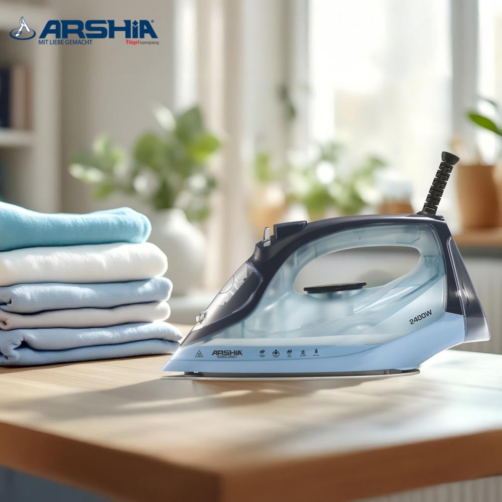 ✨ استمتعي بملابس أنيقة ومكوية بسهولة مع مكواة البخار من ARSHIA، المصممة لتمنحك أداء احترافي وأناقة يومية… بكل راحة وسرعة!