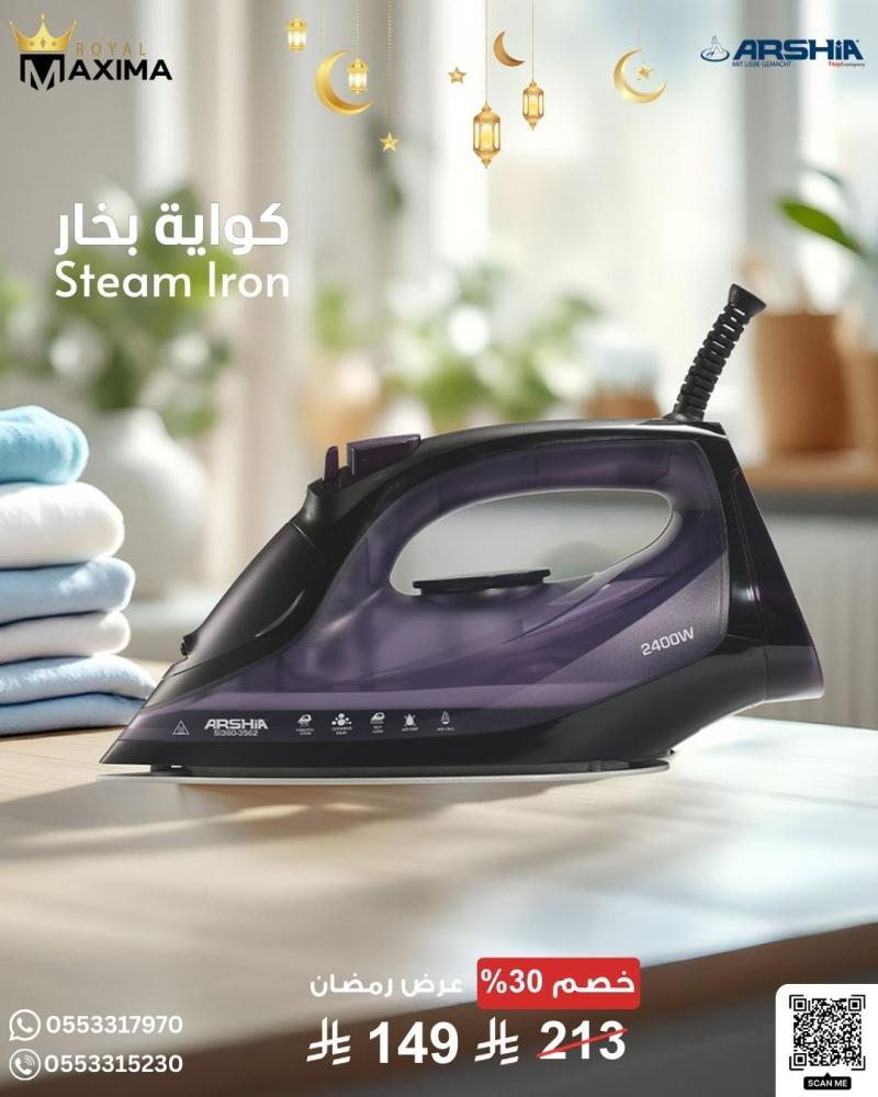 #مكواة_أرشيا #مكواة_بخار #مكواة_2400واط #مكواة_موف #أجهزة_كهربائية #أجهزة_منزلية #عروض_رمضان #رمضان_كريم #رويال_ماكسيما #RoyalMaxima #السعودية #تسوق_الآن