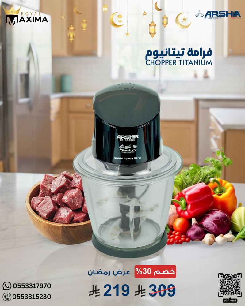 فرامة لحم – تيتانيوم – أرشيا – ARSHIA Chopper – أجهزة مطبخ – أجهزة منزلية – تكنولوجيا ألمانية – Royal Maxima – رويال ماكسيما – عروض رمضان