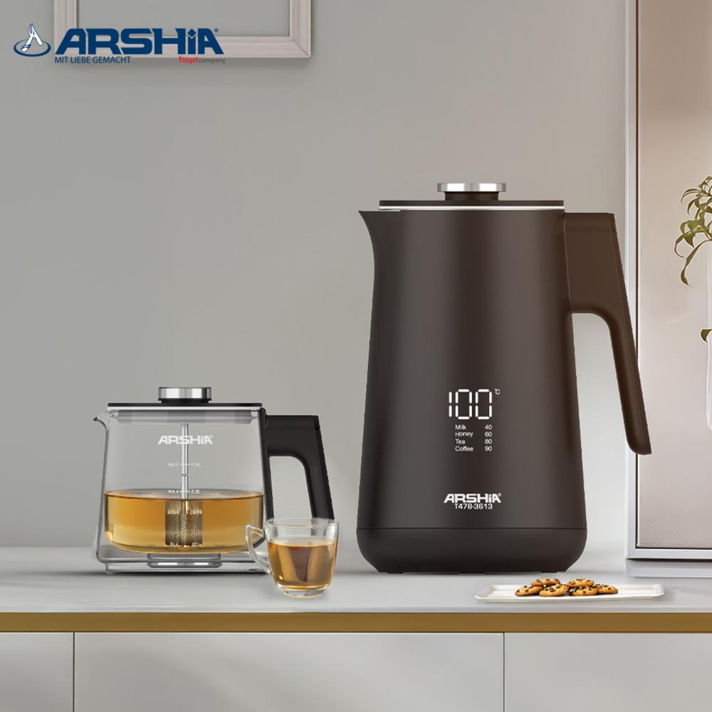 محضّرة شاي – شاي كهربائي – أرشيا – ARSHIA Tea Maker – أجهزة منزلية – أجهزة كهربائية – تكنولوجيا ألمانية – صناعة صينية – إبريق زجاجي – شاشة رقمية – الحفاظ على السخونة – تصميم فاخر