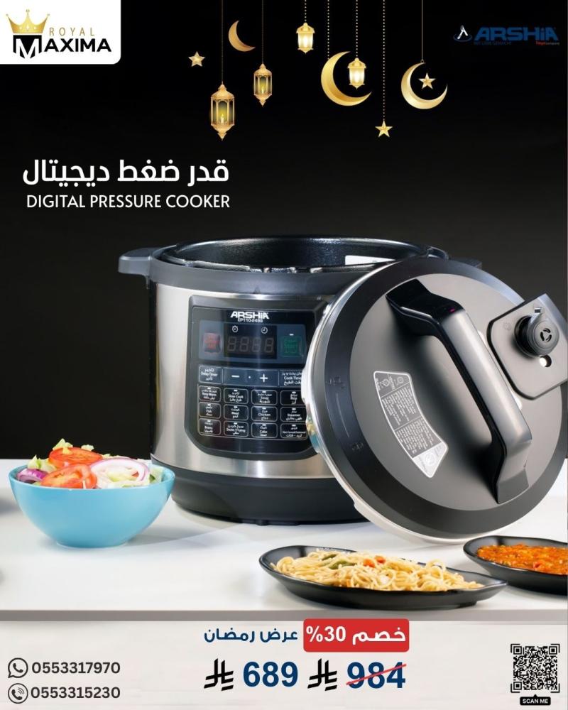 قدر ضغط – قدر ضغط ديجيتال – أرشيا – ARSHIA Pressure Cooker – أجهزة مطبخ – طهي سريع – أجهزة منزلية – تكنولوجيا ألمانية – Royal Maxima – رويال ماكسيما – عروض رمضان