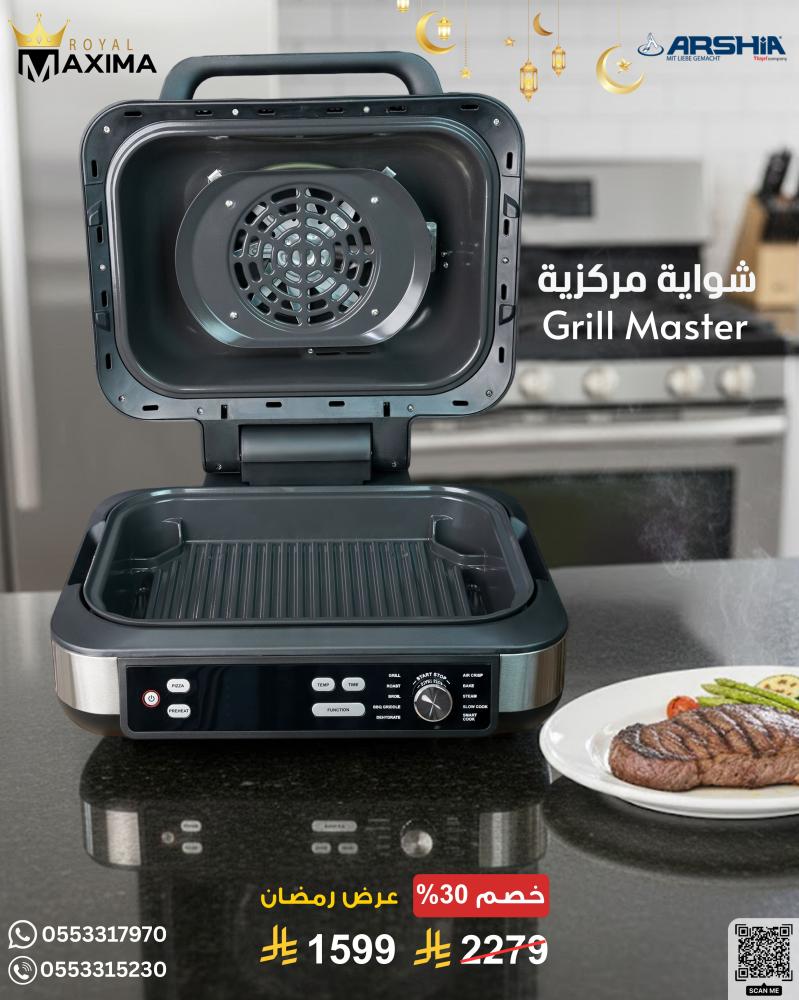 شواية كهربائية – أرشيا – شواية جريل ماستر – طهي صحي – ARSHIA Grill Master – أجهزة مطبخ – أجهزة كهربائية – تكنولوجيا ألمانية – Royal Maxima – رويال ماكسيما – عروض رمضان