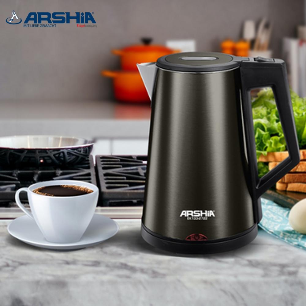 ✨ أضف لمسة من الأناقة والعملية لمطبخك مع غلاية المياه الكهربائية من أرشيا – ستانلس ستيل أسود أنيق.