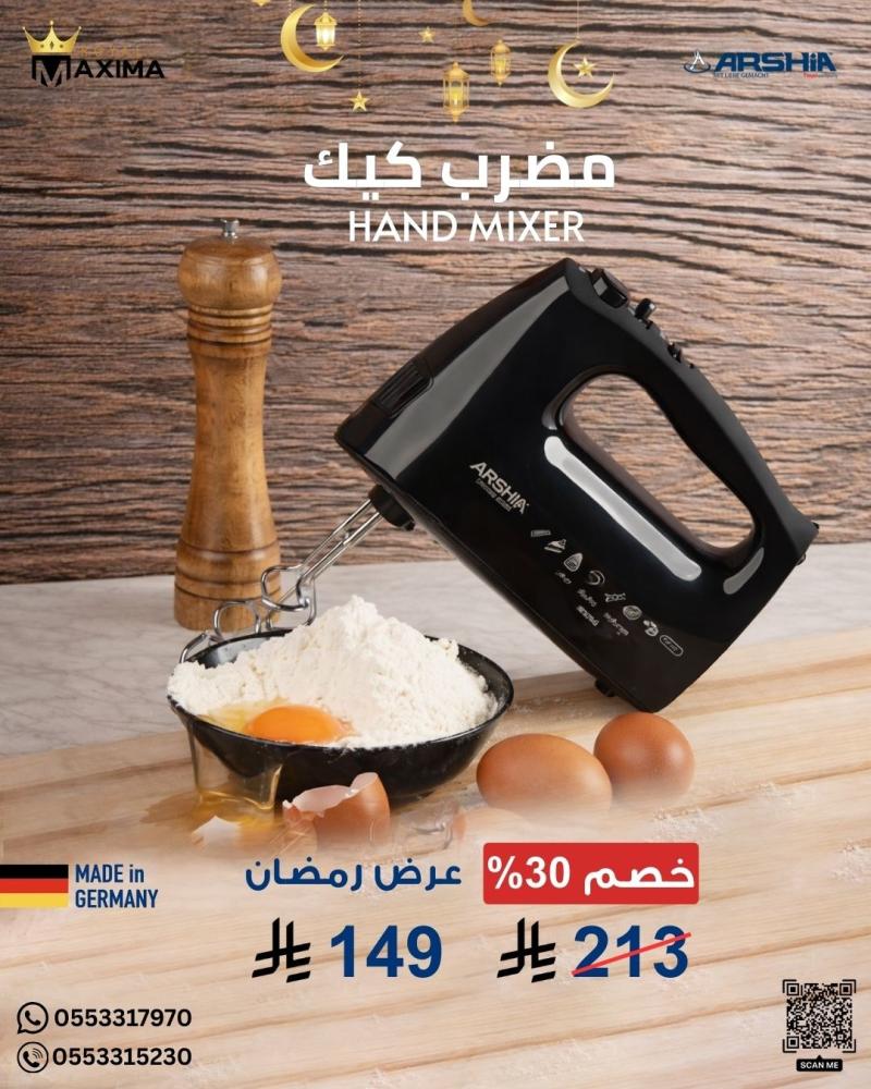 مضرب كيك كهربائي – مضرب أرشيا – ARSHIA Mixer – خفق وخلط – أجهزة منزلية – أجهزة كهربائية – تكنولوجيا ألمانية – Royal Maxima – رويال ماكسيما – عروض رمضان – أدوات مطبخ احترافية
