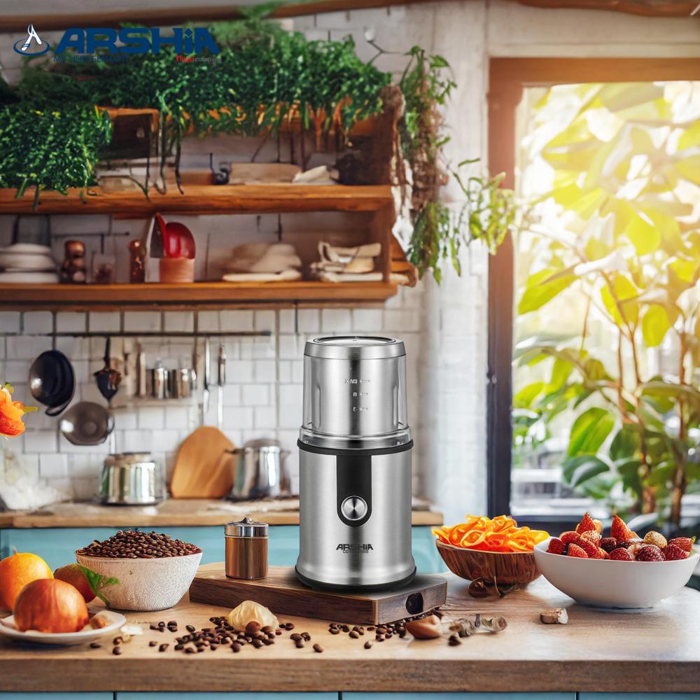 ابدأ يومك بنكهات قهوة طازجة مع مطحنة القهوة من أرشيا – ستانلس ستيل، المصممة لطحن حبوب القهوة بسرعة وكفاءة لتحصل على أفضل مذاق مع كل فنجان. كما يمكن استخدامها لطحن التوابل، المكسرات، والبذور بسهولة.